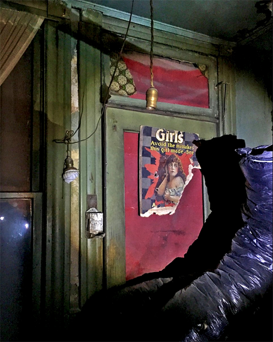 Besides having to knock down the cheap addition in the back of The Dumas Brothel, the cribs in the basement were sealed as well, with everything left behind by the women, still there; creating a time capsule. However, the first and second floors & rooms were still discreetly open for business, and “the action” simply moved upstairs, becoming more hidden from prying eyes; making it hard for the law to prosecute them, if they wanted to so.