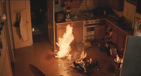 One by one clues reveal themselves; clues that point to something not altogether human. A pair of footprints in a garage turn out to be animal prints. More flashbacks come. The fate of the girl who got her palm read is told. On the night of her prophesy she spies a werewolf from which she flees in the direction of an elevator, but when it opens a menacing presence attacks!