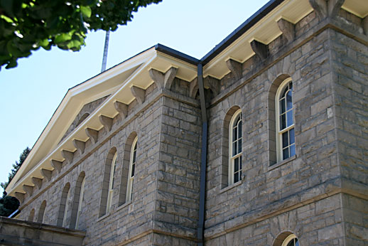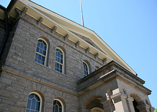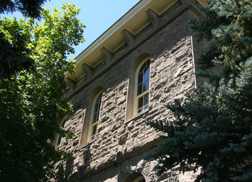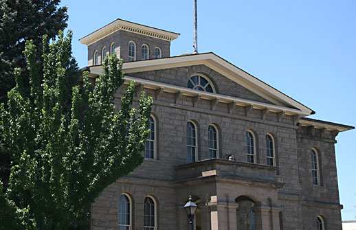 The Nevada State Mint building, described as “a rugged, fortress-like structure”, was designed by U.S. Treasury Dept., newly hired architect Alfred Mullett. The sandstone blocks were cut to size at the state prison, located right next to the sandstone quarry. The bricks were made in Genoa by The Adams Brick Works. This large, two story building is a wonderful combination of both Greek and Classical influences, topped with an Italian Villa cupola. The lovely, sugar pine wainscoting found in the inside of the building was milled locally as well.
