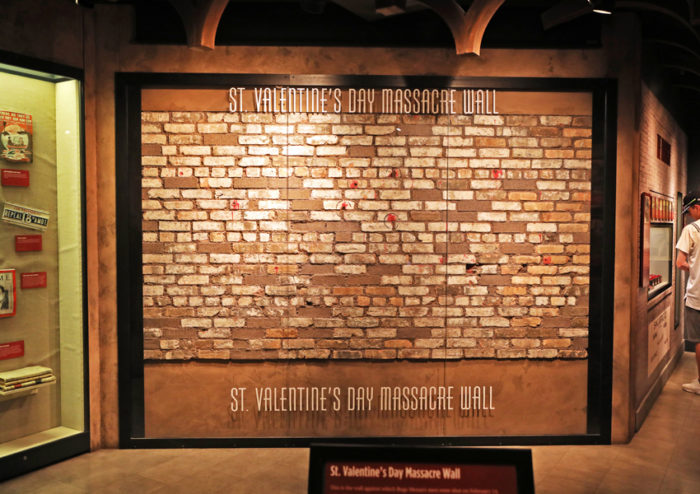 The brick wall from the St. Valentine’s Day Massacre , and the barber chair where crime boss Albert Anastasia was murdered are on display.