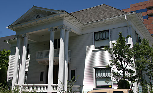 This huge mansion was “reoriented” 90 degrees, to the west end of their property, leaving the east end available for commercial development. Mildred and her family continued to live in the mansion, while Fritzi, the unsentimental one, built a gas station on her side, and lived in San Francisco. Unfortunately, Fritzi’s gas station was plowed under, and the land taken by the city so that S. Sierra St. could be widened. The Levy House is listed on the National List of Historic Places, giving it protection from any more city projects.