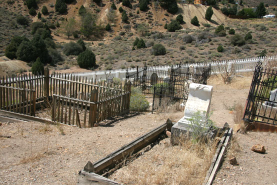 The Virginia City Cemeteries can be found on a hill located at the north end of Virginia City, just off of Hwy 341, just across from the old Mexican Mine.