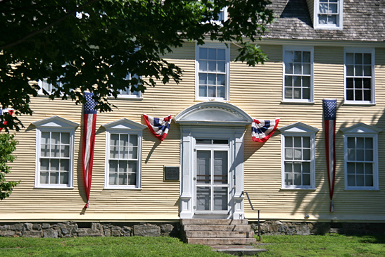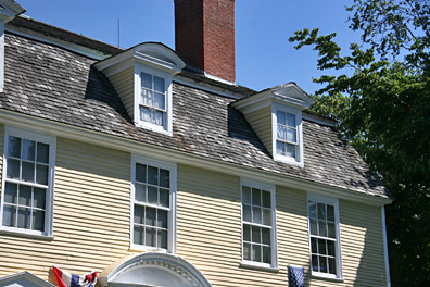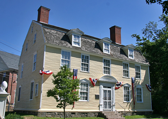 This two story, Georgian style, yellow, colonial, pre-Revolutionary War house with antique windows, and a large flower garden in the front yard, was built in 1758, as a wedding present, from sea captain, Gregory Purcell, to his new wife, Sarah Wentworth Purcell. Gregory and Sarah lived in this house for 18 years, raising their family. The home has a gambrel roof, with a 5 bay front. Throughout the years, the lovely woodwork, carvings and beautiful moldings have been well-preserved, as the home was rescued in 1920, when it was given to the Portsmouth Historical Society and turned into Portsmouth’s first historical museum, because of who wound up renting a room from widow Sarah Purcell…