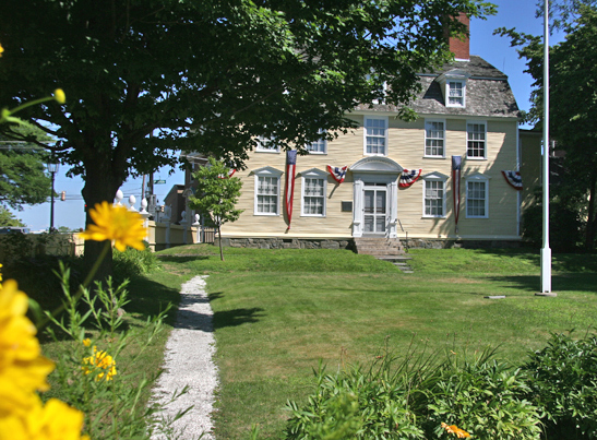This two story, Georgian style, yellow, colonial, pre-Revolutionary War house with antique windows, and a large flower garden in the front yard, was built in 1758, as a wedding present, from sea captain, Gregory Purcell, to his new wife, Sarah Wentworth Purcell. Gregory and Sarah lived in this house for 18 years, raising their family. The home has a gambrel roof, with a 5 bay front. Throughout the years, the lovely woodwork, carvings and beautiful moldings have been well-preserved, as the home was rescued in 1920, when it was given to the Portsmouth Historical Society and turned into Portsmouth’s first historical museum, because of who wound up renting a room from widow Sarah Purcell.