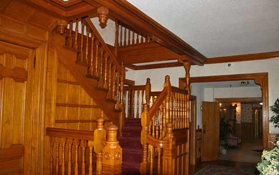 This 1881 Queen Anne style mansion-turned-inn, has three stories, a ground floor, plus a “bright atrium,” that was part of the contemporary addition that was added on by the owners, when the old mansion was renovated and made into an inn, in 1986. The inside of the now upscale Sise Inn features beautiful butter wood paneling, a Victorian atmosphere, complete with lovely antique furniture that fills every room, and complements the modern touches added; like a brass elevator door…