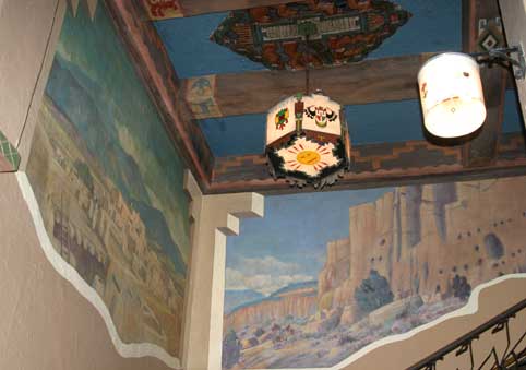 The designs of Indian symbols were not chosen on a whim, but all reflected the history and culture of the native people and all meant something. The bright colors used also reflected Indian vocabulary. The crowning touch was of course the seven murals painted in oil by Carl Von Hassler, on the ceiling of the theater. Working from a platform hung from the ceiling, very much like Leonardo Da Vinci, Von Hassler spent months on his creative murals.