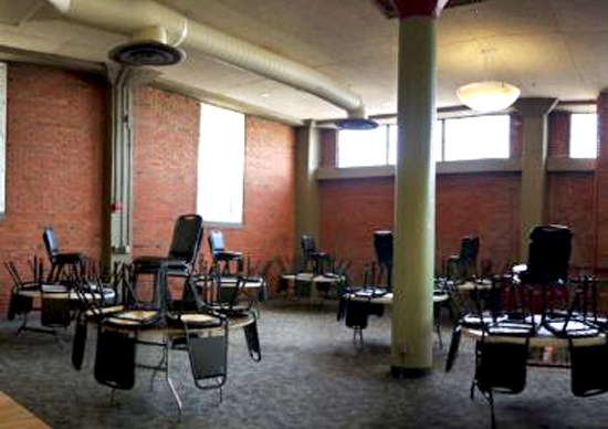 The second floor still is the home of The Wool Warehouse Theater, which still has dinner theater activities, as well has hosting weddings and other special events in need of a stage. It encompasses 5000 sq. feet and holds up to 350 people, 250 for dinner theater.