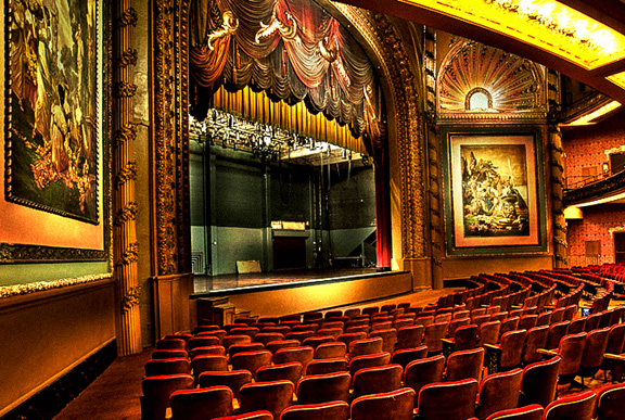Don’t be fooled by the ho hum outside of this theatre, whose size is now dwarfed by the huge hotel on one side and a commercial building on the other. This 1913 theater is magnificent inside, fully restored to its 1913 classical splendor, including the high ceiling, and ornate decorum. It offers 3 levels of seating: Orchestra, Mezzanine on the second floor and the Balcony on the third, providing seating for 1,784 patrons…