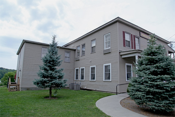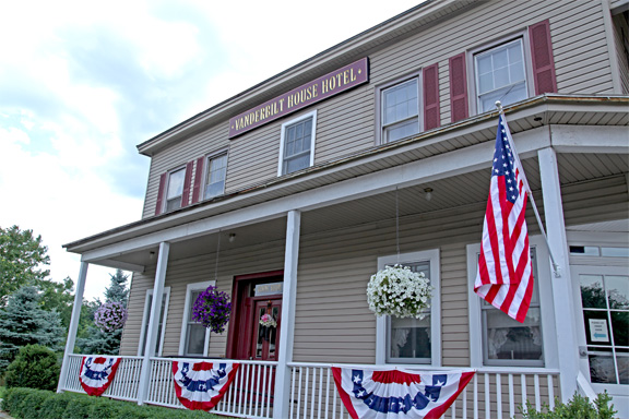 The Vanderbilt House Hotel can be found along Philmont’s Main St. between Lower Ark St. and Railroad Ave. in New York. The back deck of the Vanderbilt House Hotel has a great view of Summit Lake.