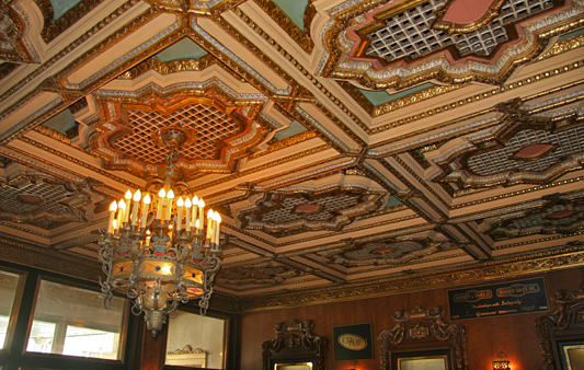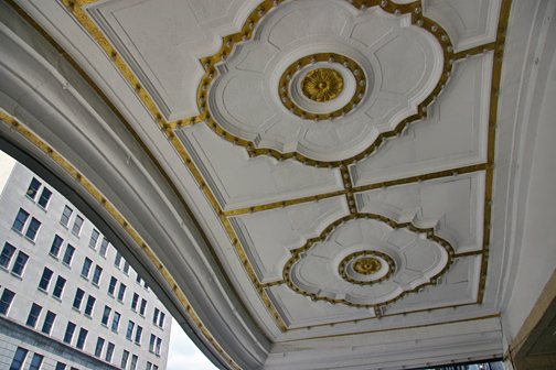 Lamb wasn’t stuck creatively with using just one or two influences when he created his theatre masterpieces. A touch of Moorish influence is also visible inside the auditorium, with stars twinkling from the domed ceiling, and the adornment of twisted columns on either side of the stage. The twisted columns are also found on the outside facade, amongst the Mexican Baroque elements.