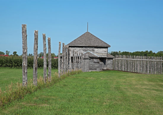Country Road #4 runs through the center of this fort, dividing the east side of the fort from the west side of the fort. On the east side of the fort, people may visit the original, main guard house headquarters & jail, outlines of the stable, officer quarters, barracks, granary, ammunition dump, and where the cannons were located, that saved the fort in its most threatened hour. The west side of the fort has the reconstructed guard block houses, outlines of the soldiers’ commissary, and the home of the person hired to run it. Also, outlines of the fields where food was grown, animals were kept, and other things that were important in the running of the fort can be seen as well.