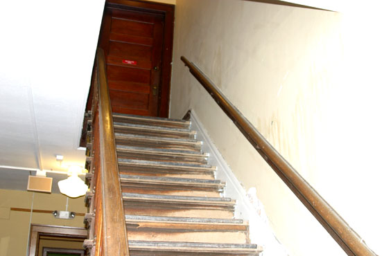 YIKES! Tom and I visited this building as well. It was really creepy, even during the day, especially the stair area. The house has an uneasy, tense feeling of a haunted place with disturbed presences. (Even I, the un-psychic one, got an uneasy feeling standing too close to the stairs which led up to the second floor.)