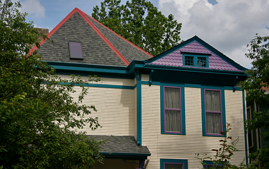 In 1890, Banker and architect Amos Solomon designed and built the smaller, original home, with a side yard, a back yard and its own private carriage drive off of Fifth Avenue. When Solomon decided to double the size of this little home, Solomon added a parlor, foyer and two rooms upstairs. He added a false turret and a gable with a false balcony to the roof. While he was at it, he added a new front porch. Solomon changed his address from 1269 Harrison Avenue, to 313 West Fifth, because Solomon wanted a far more fashionable address. At some point, during this home’s history, the attic was turned into another bed room, perhaps when the property was turned into a rental.