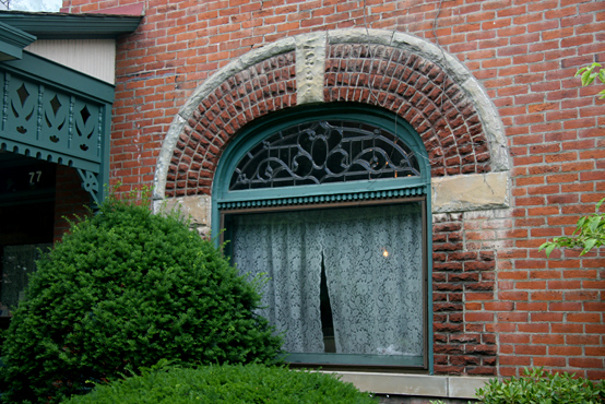 Another in-house writer and Toby, the dog came down to the first floor at night, when things were quiet. While in the parlor, Toby began growling and starring at an unseen presence, sitting on the velvet couch, just underneath the leaded glass window.