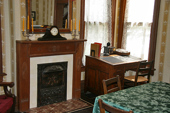 The home’s furnishings reflect the popular mission oak style decor, found in Sears Catalog, around 1913. In 1983, the outside of the home was restored, following an old photograph and the remaining physical evidence of what was originally there. The front porch, and the stairs leading up to the home’s second floor were entirely rebuilt by a local master craftsmen. The condition of the home must have been really in need of repair!!
