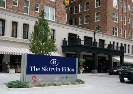 The elegant Skirvin Hilton can be found in downtown Oklahoma City, on the corner of Park Avenue and N. Broadway, just a few steps away from the Cox Convention Center, which sits in the same plaza. The Skirvin Hilton is also just a short walk away from the Ford Center Arena, Bricktown Canal and Entertainment District, Bricktown Ballpark, the Oklahoma City National bombing Memorial, Oklahoma City Art Museum, Civic Center, the State Capitol and OU Medical Center.