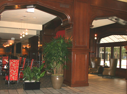 WOW! What a gorgeous, impressive hotel. Tom and I finally found it, but it was well worth the effort. There are 3 square, 14 story wings, with 2 rounded bay buildings in between the wings. The brickwork is in a Flemish bond pattern, with the lower levels being faced with limestone. The high-ceiling lobby is decorated in English Gothic decor, and takes one’s breath away. Check out the pictures.