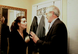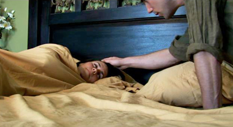 There are lot of well done scenes in Paranormal Activity. Early in the film, they invite a ghost expert into the house who senses something is indeed in the house with them. He tells them it is not a ghost but a demon. So he recommends they call his demonologist buddy. I liked the part where Katie got up in the middle of the night and just stood there looking at her boyfriend. At first this is a little creepy, but then they show that several hours go by on the video timer. The thought that my better half might stare at me for so long is really freaking me out. What could they possibly be thinking? I should kill this person?