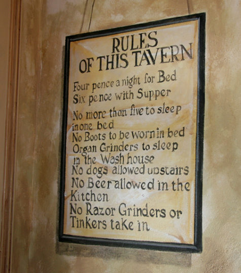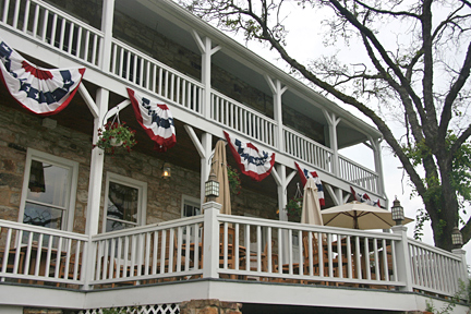Going through the front door is like stepping back into the 1700s. The visitor sees lots of wood paneling and some very cool, large fireplaces, wooden tables, and a really narrow and steep staircase that leads to the second floor of the restaurant, that also has a bar. On this floor, the visitor also finds the entrance to the 4 bed and breakfast inn rooms in the back of this third floor, which were part of the original 1762 structure. On the wall is a copy of the early inn’s rules for guests. The rooms all have access to a porch area to enjoy the breezes and the view.