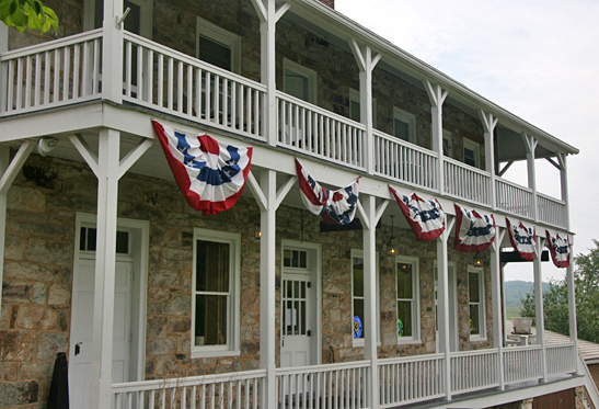 Being so close to two Indian trails, the original building that stood here in the early 1700s was an unofficial, informal French fort, trading post. After the French had left the area, the William Penn family owned the 690 acres, which included the land where the French post had been. Hans Ireland, who was what we would call today a land developer, bought this lot, in 1760, and then sold it to an Indian trader, Robert Callahan, who saw it as a perfect place to build upon the existing foundation of the fort, a rest stop/trading post, and personal home. The Indian trails had become the main roads Old Forbes and Burd Roads (Routes 30 and 31) for traveling by many on their way from eastern Pennsylvania to the Ohio River, and territories beyond. During the Revolutionary War, Callendar joined George Washington’s forces, using his skills as a scout to help in this war effort. George Washington and his men stayed here, to rest, regroup and even perhaps plan their battles.