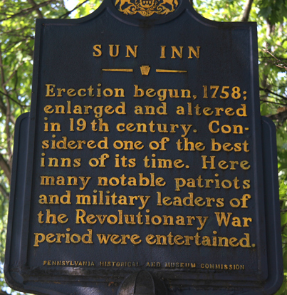 By the late 1750s, merchants had discovered the profitable business opportunities in Bethlehem. The need for an inn was very much evident, so the Moravians built “The Moravian Sun Inn” to fit the needs of these merchants. The original building was a two story structure, 66 feet (20 m) by 40 feet (12 m) with a mansard roof; a sturdy, fire-resistant structure, typical of this era. The Moravians supported the patriots, so it is not surprising that many people connected to the American Revolution and the new American government loved staying here. The high quality standards in accommodations, hospitality and service attracted such people as George Washington, John and Samuel Adams, John Hancock, Marquis de Lafayette, Generals Gates, Mifflin, and Sullivan, and 14 members of the 1777 Continental Congress are the known public figures who have stayed at The Moravian Sun Inn. While staying at this inn, the 1777 Continental Congress members held a meeting, and signed The Order of Protection.
