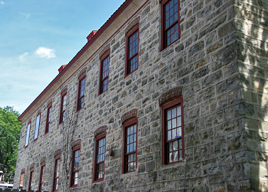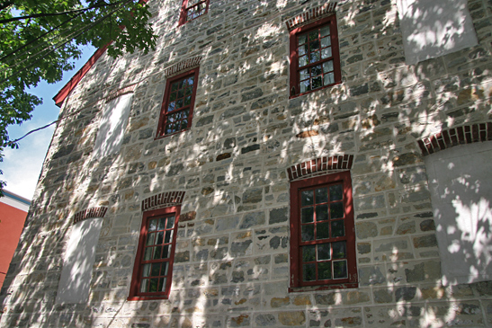 The Sun Inn building is a large, rectangular solid limestone, 2 1/2 story building built by the Moravians in 1758 to last through many generations, with the help of many owners and citizens. It has long been a commercial building, being some sort of tavern/inn or restaurant through its rather long history. According to The Library of Congress web page, The Moravian Sun Inn was “constructed of native limestone, had a gable roof (with a shed roof and jerkin-head), two shed dormers, a central dormer with a segmented arch, central chimneys, and vaulted cellar”. As it was often the case in buildings in this era, the rooms of the Moravian Sun Inn were located off a wide central hall. On the first floor, there was a “common” room, kitchen, and inn keepers office and quarters. ( DRAWINGS )