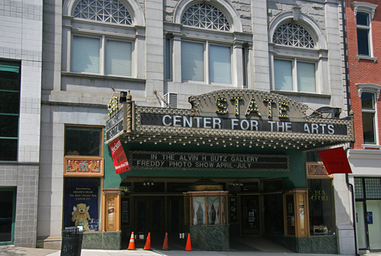 The 1925 era State Theatre, now called “State Center for the Arts”, adds a lot to the historic downtown area, being a carefully restored and renovated building’ Its impressive facade stands out along the city sidewalk, being very much a 1920s European style 0f architecture that was very popular in theatres of this era.