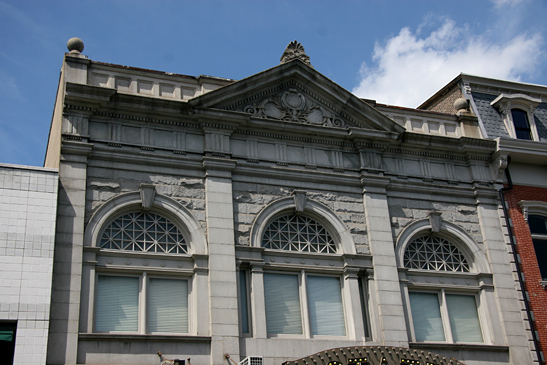 The building that was originally built on this downtown street property in 1873 was for the Northampton National Bank. In 1910, the new owner demolished the back of the bank building, leaving the granite facade and the foyer; and proceeded to remodel the inside to create the small Neumeyer Theatre, for vaudeville entertainment acts, that came through Easton. In 1914, it also became a silent movie house, and changed its name, to Northampton Theatre, and then to the Colonial Theatre, in 1916.