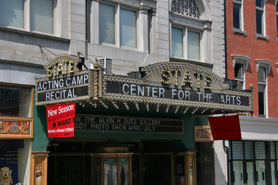State Theatre -“State Center for the Arts” can be found in the heart of the downtown historic district of Easton, on Northampton Street:(248), that runs east from Highway 22, through the Center Square, across the river and ends on N. Main St. The theatre is located between cross streets, N. 5th and N. 4th.