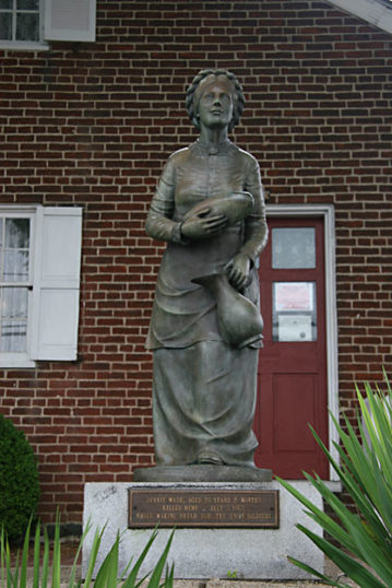 When soldiers came to take her body, her mother insisted in having Jennie put in the cellar, until it was safe to move her. Soldiers stayed with the body until she could be buried in a temporary burial spot. Finally, Jennie’s remains were buried in Gettysburg National Cemetery with honor. Her grave is honored by a lovely statue and an American flag.