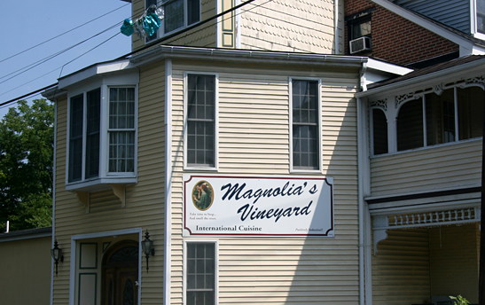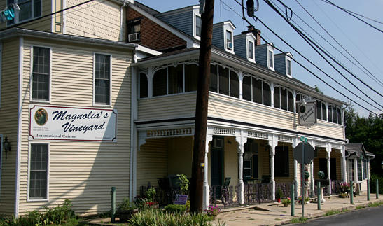 Magnolia’s Vineyard Restaurant building can be found at the corner of Huckleberry Road and Village Road, in Orefield, PA, about 1 hour and 15 minutes southeast of New Hope.