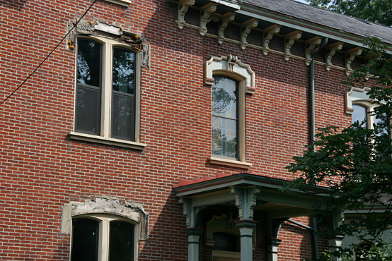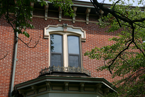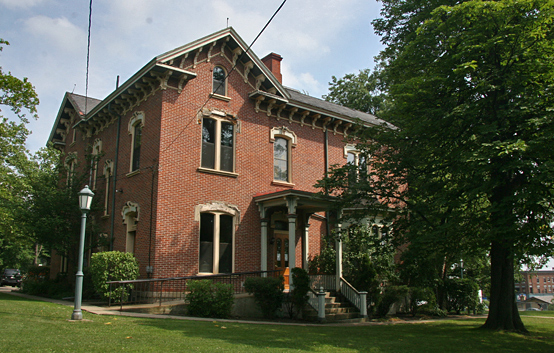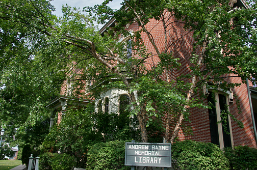 The Andrew Bayne Memorial Library is located in a stately 1875 Victorian brick mansion with yellow wooden decor. Tom and I went inside to visit, and look around. The city has done a good job keeping the inside in good shape, though the wooden trim around the windows on the outside need some TLC.
