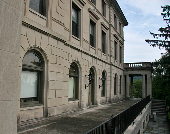 Originally built in a very ritzy part of town, this “opulent” 33-44 room, $750,000 Italian Renaissance style mansion was a grand estate for a self-made man. It was built over an old iron mine, that was sealed but never filled in. The outer walls of the mansion were made of limestone & brick, with marble pillars added all around the outside of the first floor, with marble trim and lovely stonework. From the western portico, the family had a lovely view of the city.