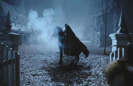 Christopher Walken is the Hessian (headless) Horseman… the decapitated horror who rides by night seeking vengeance on the perpetrators who have stolen his head from his grave.