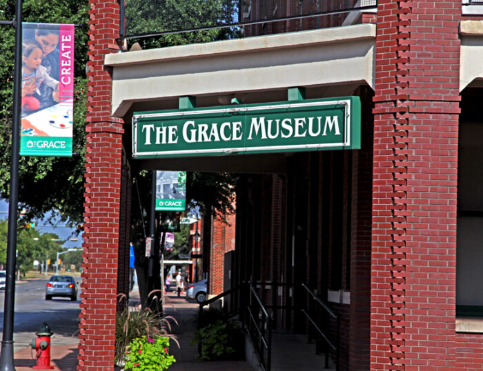 THE GRACE CULTURAL CENTER MUSEUM is located in the former grand old Grace Hotel building. This museum has three wings. The center wing of the Grace Museum sits on Cypress St. The west side North wing (left of the center wing) sits on N. First, and the east side North wing(right of the center) is located off a courtyard with no street noise.