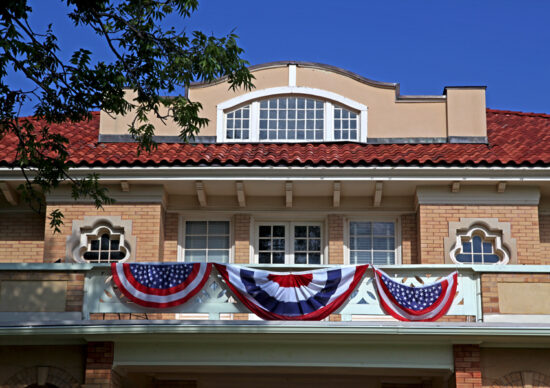 This home features Prairie style the “Broad overhangs and long Horizontal lines.” There is a large front porch with a balcony on the porch roof which can be reached through the double doors of the master bedroom. The original home had Cypress wood sidings, and had a shake roof. The column in the front were made of Cypress wood.