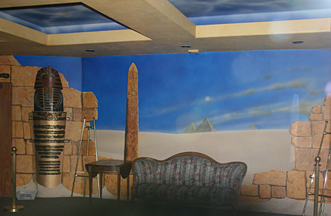 The Egyptian is a three floored, proscenium-style theatre, featuring Egyptian inspired architecture includes lotus leaf motifs, scarabs, hieroglyphics and symbols of life and happiness. It has seating in its auditorium for 266 guests and an additional 16 seats at its cabaret tables. The third floor has a “carpeted hospitality area” which has room for 125 people…