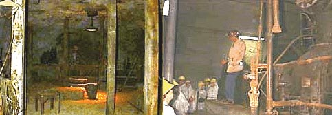 In the middle of this train trip, the tour arrived at the heart of the mining operation where the most dangerous, hand-mining was done. Also on display were the work rooms where miners “jury-rigged” parts for broken parts, the compressor room, as well as displays of the mining practices used in the late 19th century.