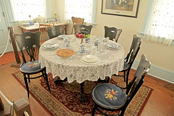 1) As A GHOSTLY PARTY GUEST: Ann Eliza Webb – While two other guides were giving Clara, a tour guide, a birthday party in the house’s kitchen, two of the three people present looked up and saw a small female apparition dressed in black, with her hair on top of her head, looking out the living room window. Though they couldn’t see her face, she fit Ann’s description perfectly. The third person had her back to the living room. Perhaps Ann came physically to this birthday gathering, because all three women admired her so, and she was, after all, one of the original hostesses in this house, which she considers hers now, which she gladly shares with the living.
