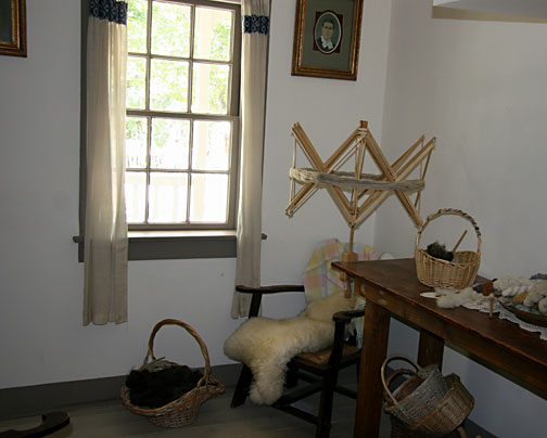 In this historical home, guides demonstrate to visitors how the women did their spinning and weaving projects.