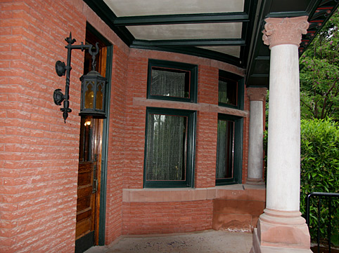 To take a tour of this glorious mansion, the visitor must call two weeks in advance to get on a tour. Tom and I haven’t been able yet to do so, but we did stand on the front porch, and get some pictures of this immense mansion, and its lovely gardens. The pictures on its website don’t do it justice. The front porch is much bigger and grander than we thought, and we got a look inside at the entry way and part of the staircase through the windows. This is a spectacular mansion with all the bells and whistles, and we can’t wait to get on a tour of the interior.
