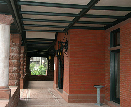 This 21 room, 3 floored Richardsonian, shingle style “bungalow” was one of the first of the gloriously expensive mansions built in Salt Lake City, signaling the city’s transformation from being a Mormon village to a modern city. The mansion itself was built with a really dark brick on a brownstone base, trimmed with Nugget Sandstone taken from either Red Butte Canyon or Emigration Canyon. The mansion also had running water, a conical turret and oval portico, complete with wrought iron ornaments.