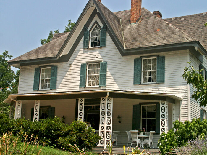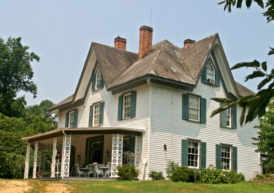 This Edgewood Plantation house has roomfuls of antiques; in the spirit of the 1800s, Civil War era. Edgewood Plantation House has steam heating, and central air conditioning. There are five glorious common rooms; a parlor, a foyer, a library, a dining room and a large country kitchen. It has ten fireplaces and five chimneys, the original gothic windows, and pinewood floor boards. Connecting it all is a three story, beautiful, hand-carved winding staircase.