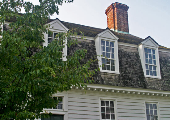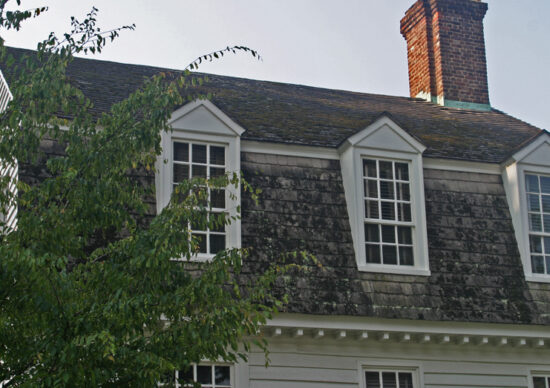 The 1850 front porch was taken off, and the backyard shed was torn down.The current roof was in terrible shape, and was replaced with Williamsburg tile and Mohawk Asbestos shingles, before the dangers of asbestos were discovered. The asbestos has since been removed. The Gamble roof design on the ends were repaired or replaced by Colonial brick.