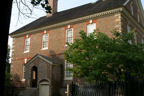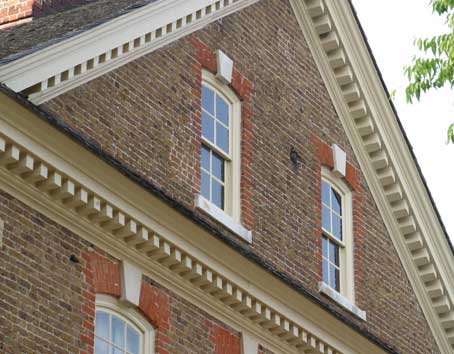 York Hall/Nelson House is huge, three story, 1730, solidly built, brick home. This grand home is a stellar example of a home built in the Georgian style, which was named in honor of “four British kings named George, who reigned from 1714 to 1830.” York Hall/Nelson House has a “simple, balanced appearance,” giving an impression of “order and stability.” It has the typical triangular pediment above the front door and the cornice, where one can see a cannon ball from the Revolutionary War decoratively sticking into the bricks! One can see the decorative molding, under the eaves of the roof, reflecting ancient Greece and Rome decor influences. Most of the Nelson House is made of the original materials, including the bricks and most of the mortar in the outer walls. Inside the house, the wall panels and most of the wooden floors are also original.