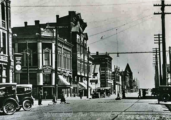 The James and Hastings Building was constructed on the former location of a two room log cabin, and then a dry goods store.