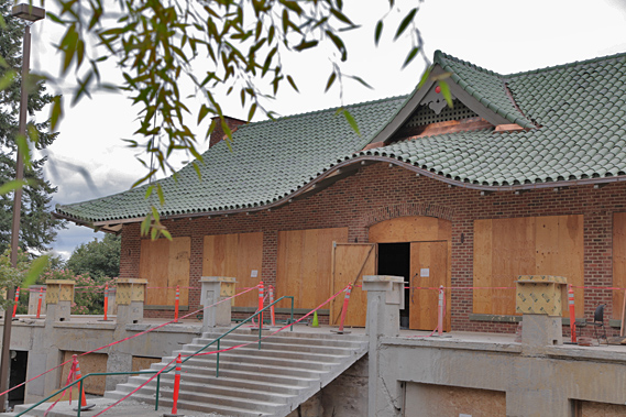 When we visited the Pagoda during the summer of 2012, the major renovation projects were in full force. The entire building was inclosed in fencing, but we could make out the lovely Pagoda roof!.. It was obvious then that this old, beloved building is getting a first-rate make-over that it deserves. There is to be a grand reopening day on January 12th, 2013, as all the renovations, and improvements to code have been finished and the community is ready to celebrate!!