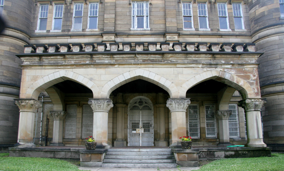 The first building to be finished was the North Wagon Gate building and was built by 150 inmates, using hand-cut sandstone from a near by quarry, and then became the housing unit for these 150 inmates. The first phase of West Virginia Penitentiary was finished in 1876, opening for business.