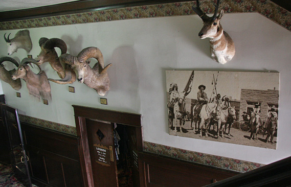 I agree with Buffalo Bill! Tom and I visited the two story, historic Irma Hotel and felt that we had stepped back in time to an elegance that appealed to the rich and everyday folk as well. It has a large sculptured buffalo head attached to the outside 2nd floor central corner, where the hotel turns east along Sheridan Ave. Buffalo Bill’s private suite and verandah are just to the right of it. Below the buffalo head is the hotel’s name, THE IRMA HOTEL.