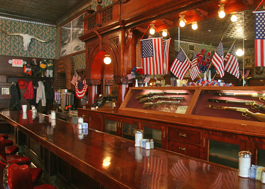 I agree with Buffalo Bill! Tom and I visited the two story, historic Irma Hotel and felt that we had stepped back in time to an elegance that appealed to the rich and everyday folk as well. It has a large sculptured buffalo head attached to the outside 2nd floor central corner, where the hotel turns east along Sheridan Ave. Buffalo Bill’s private suite and verandah are just to the right of it. Below the buffalo head is the hotel’s name, THE IRMA HOTEL…